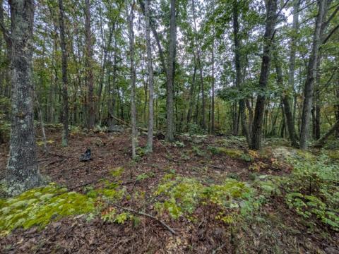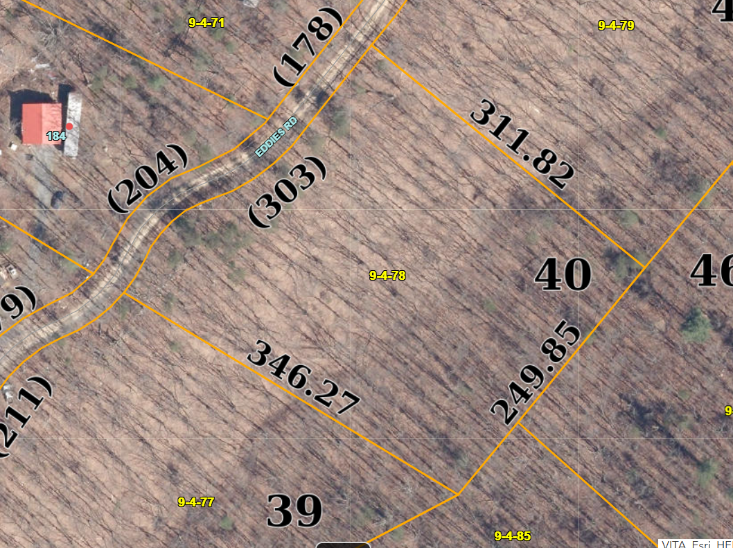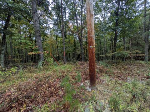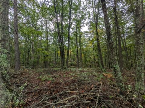 As you approach the property from the Northeast on Eddies Road there is a old driveway leading down into the property.  It's an old driveway, which is now partially blocked by some brush and fallen tree, but it would not take much work to get good access.