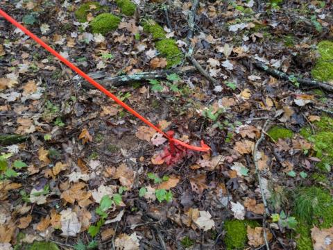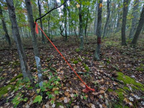 The property is gently sloped down from the road to a drain (seasonal creek maybe?)  and then up on the other side.  All of the corners are well marked.