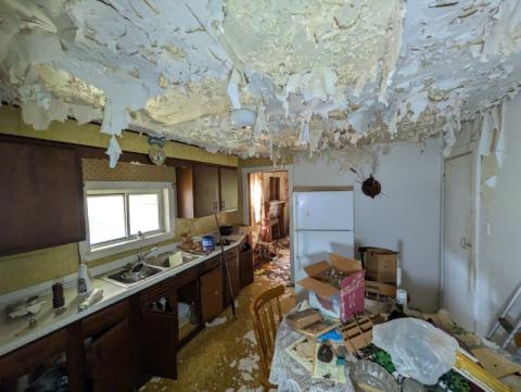 House with solid bones and thick foundation, needs some work.  Built in 1910, they don't build them like that anymore.  It's my understanding that the one story houses on this block were built for the mine managers back in the day...