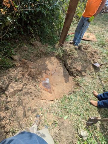It needs a septic.  The old system was a nonconforming steel tank and it's rusted up and not usable.  The septic drain is located at the back corner of the house.