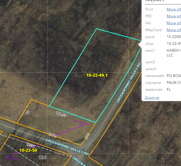 It's on Green Spring Valley Rd and it's a flat .55 AC. 240 feet of road frontage and extending back 100 feet from the road. Of course all state and county ordinances must be followed but this property is unrestricted by covenants or association rules.